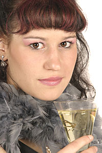 Als die ersten Töne von Musik erklangen (ein schlechter Mix aus House und brasilianischen Klängen) wurde getanzt was das Zeug hielt. Ungefähr so, daß die Damen in ihren hohen Hacken von einem Bein aufs andere traten und die Männer sich nur seicht wiegten, damit das Haar und der Anzug nicht verrutschte. Zu dieser Zeit hatte ich schon das 3. Glas Sekt intus und einige Seiten meines Blockes vollgekritzelt. Mein Gesicht wirkte wohl noch immer sehr wichtig, aber richtig beachten tat mich noch immer niemand. So stellte ich mich wild zappelnd, in die Hände klatschend auf die Tanzfläche um die Meute etwas aufzulockern - klappte nicht .. |
